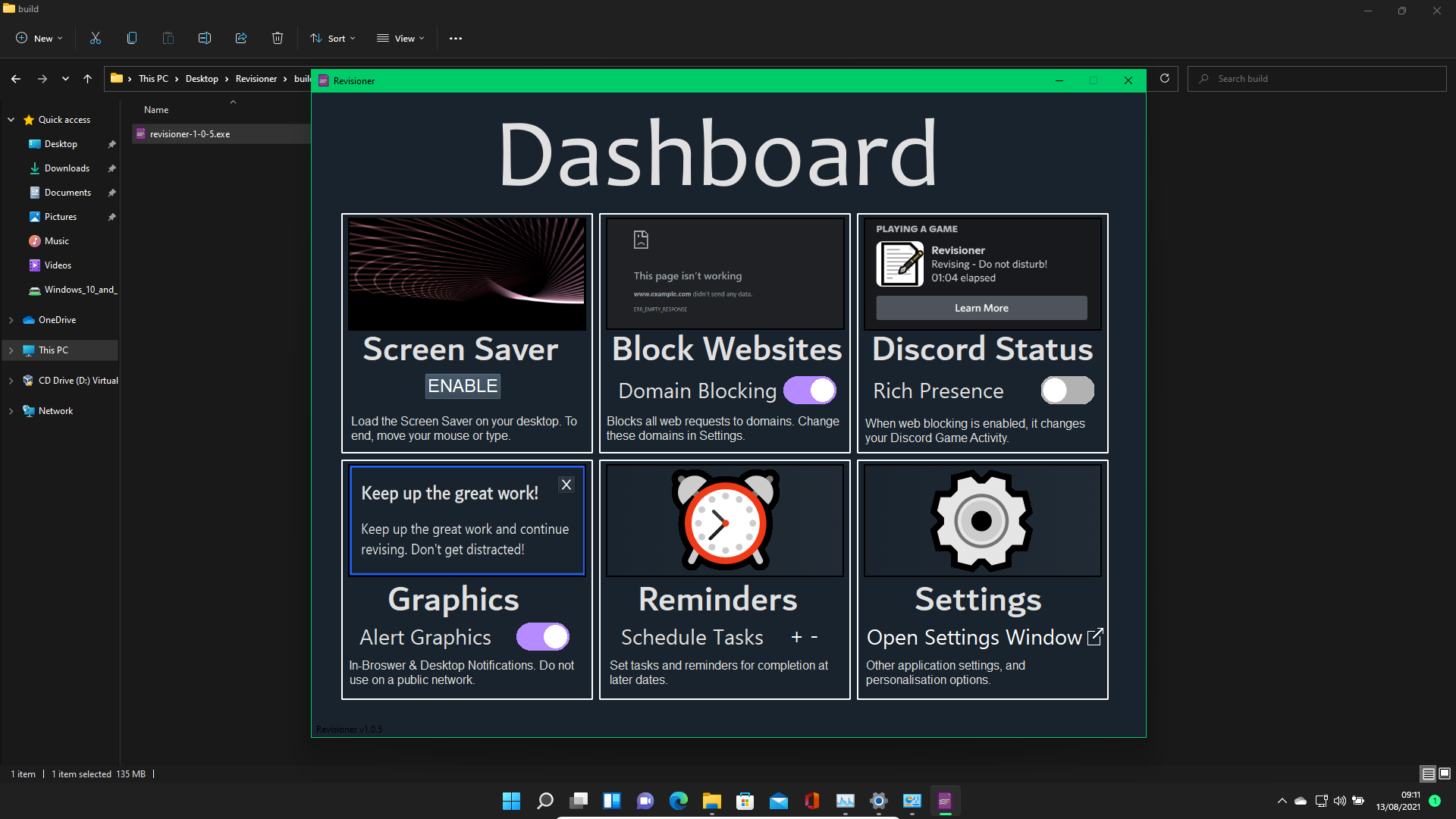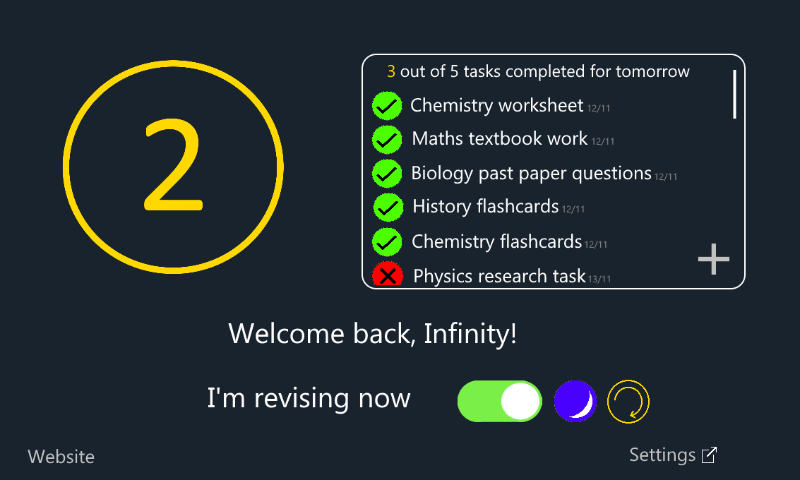 Revisioner is an app under development designed to aid revision by blocking potential distractions and distractive material.